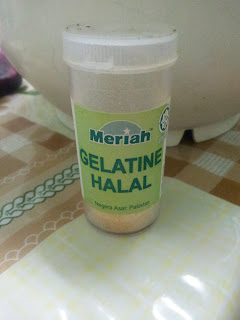 2 sudu besar gelatin. campur dengan 3 sudu besar air panas dan larutkan.